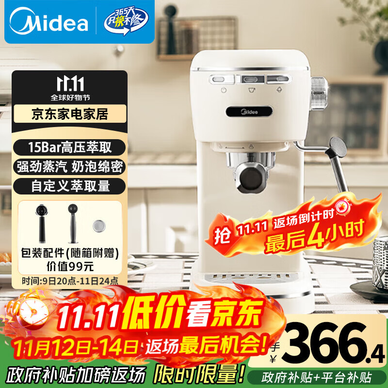包邮 美的(Midea)【政府补贴】半自动咖啡机奶泡机家用小型意式美式咖啡萃取机打奶泡一体花式奶咖MA-KFE07